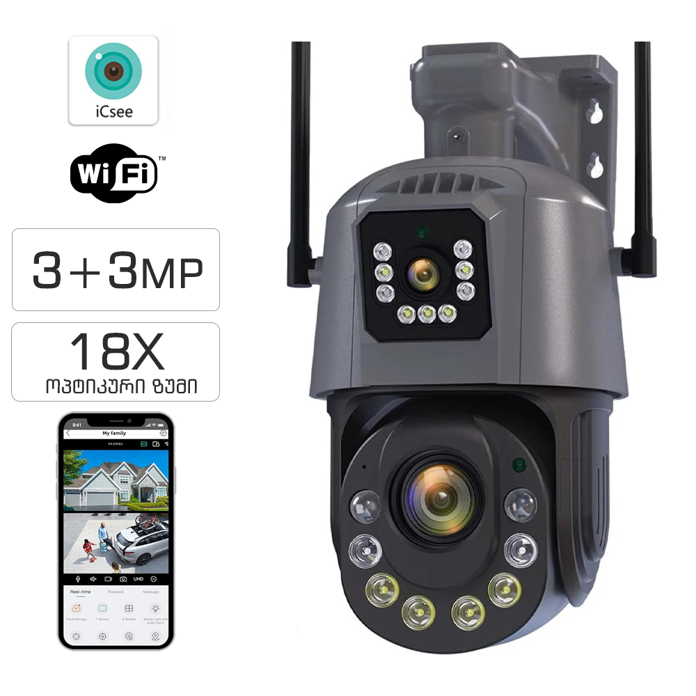 - ვიდეოს გარჩევადობა: 3MP+3MP